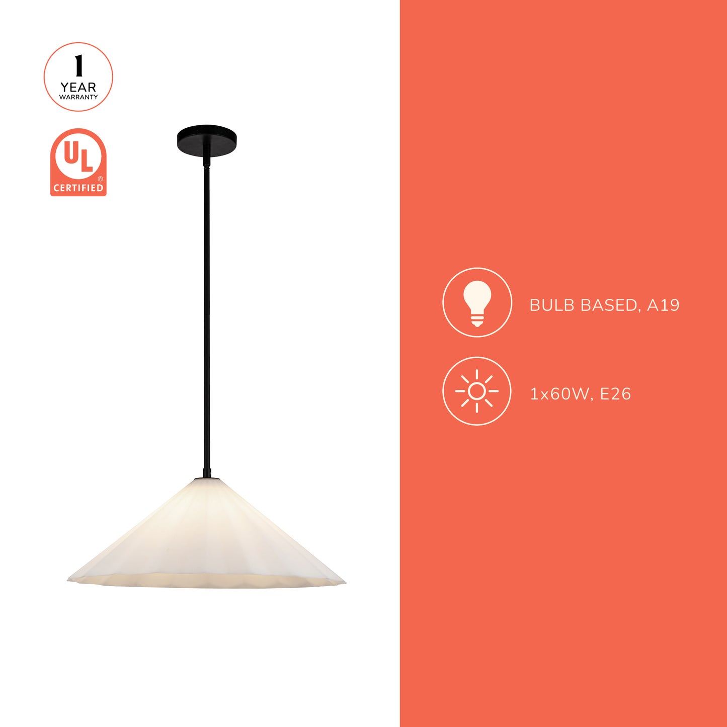 - 60W E26 or equivalent bulb required, not included