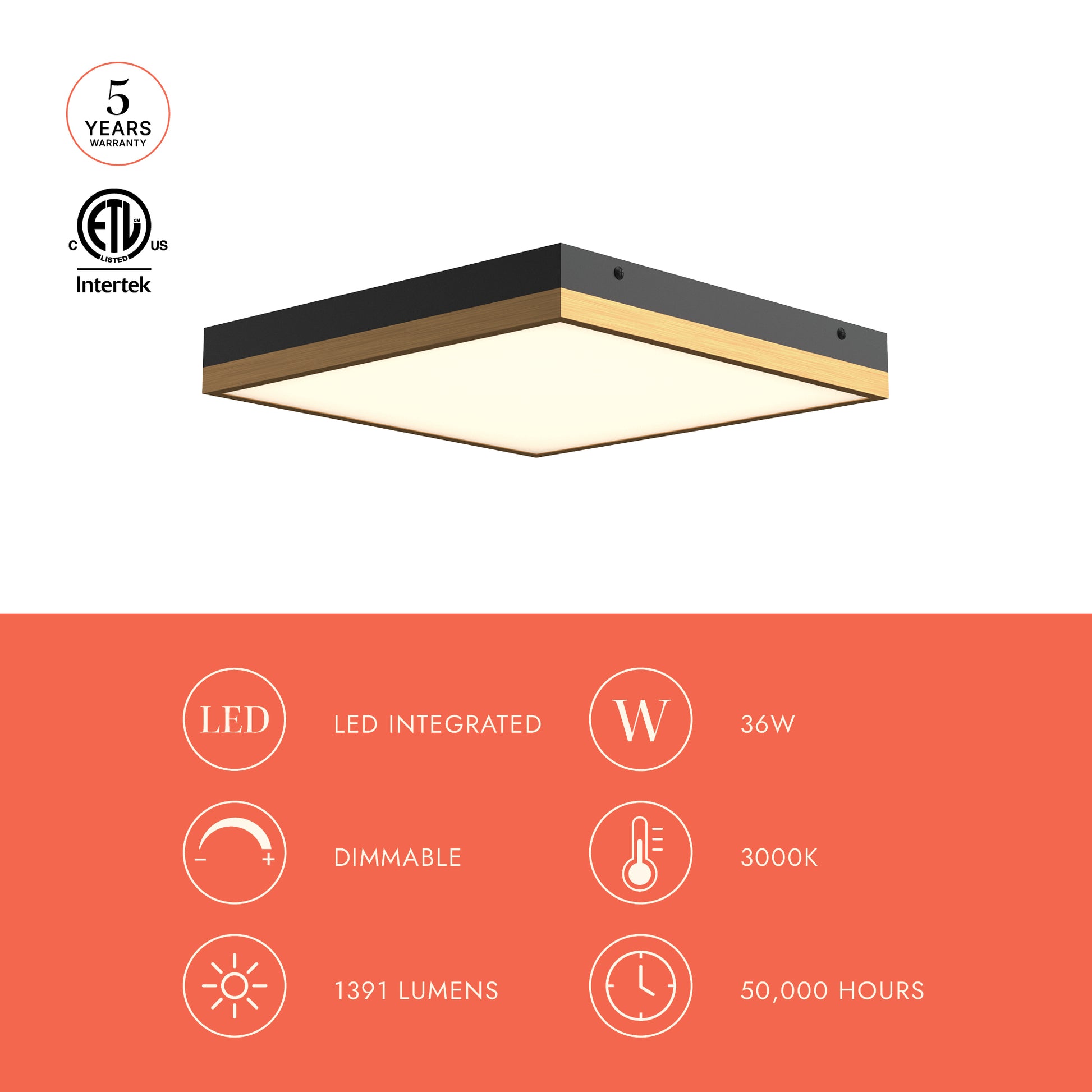 - Integrated LED with 3000K Warm White Color Temperature