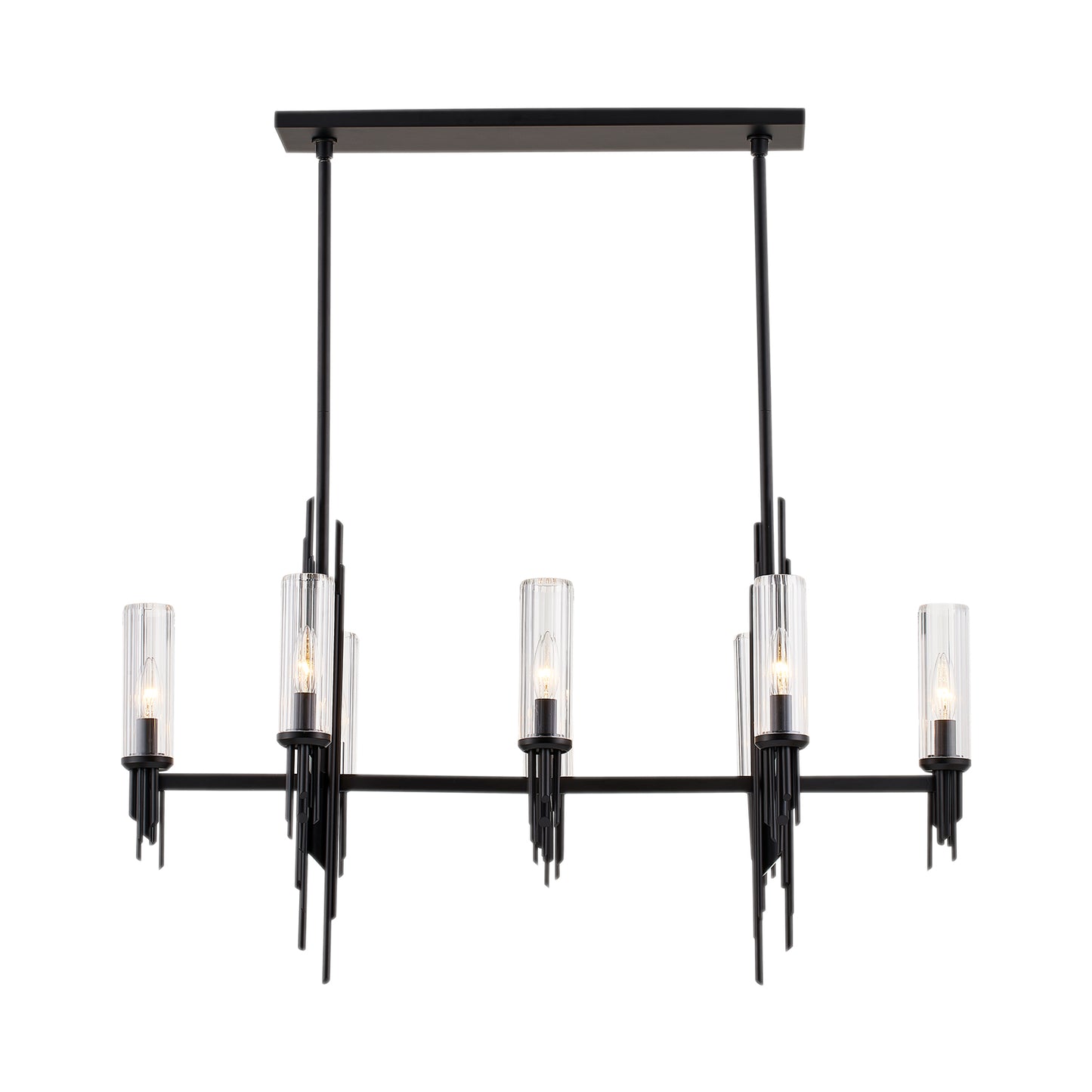 Inspired by the resurgence of brutalist art and architecture, the Torres collection makes a stark yet stunning statement. Elegantly forged metalwork defines this collection. The Torres can be adorned with stunning ribbed crystal shades, or it can stand alone for a boost of modern flair.