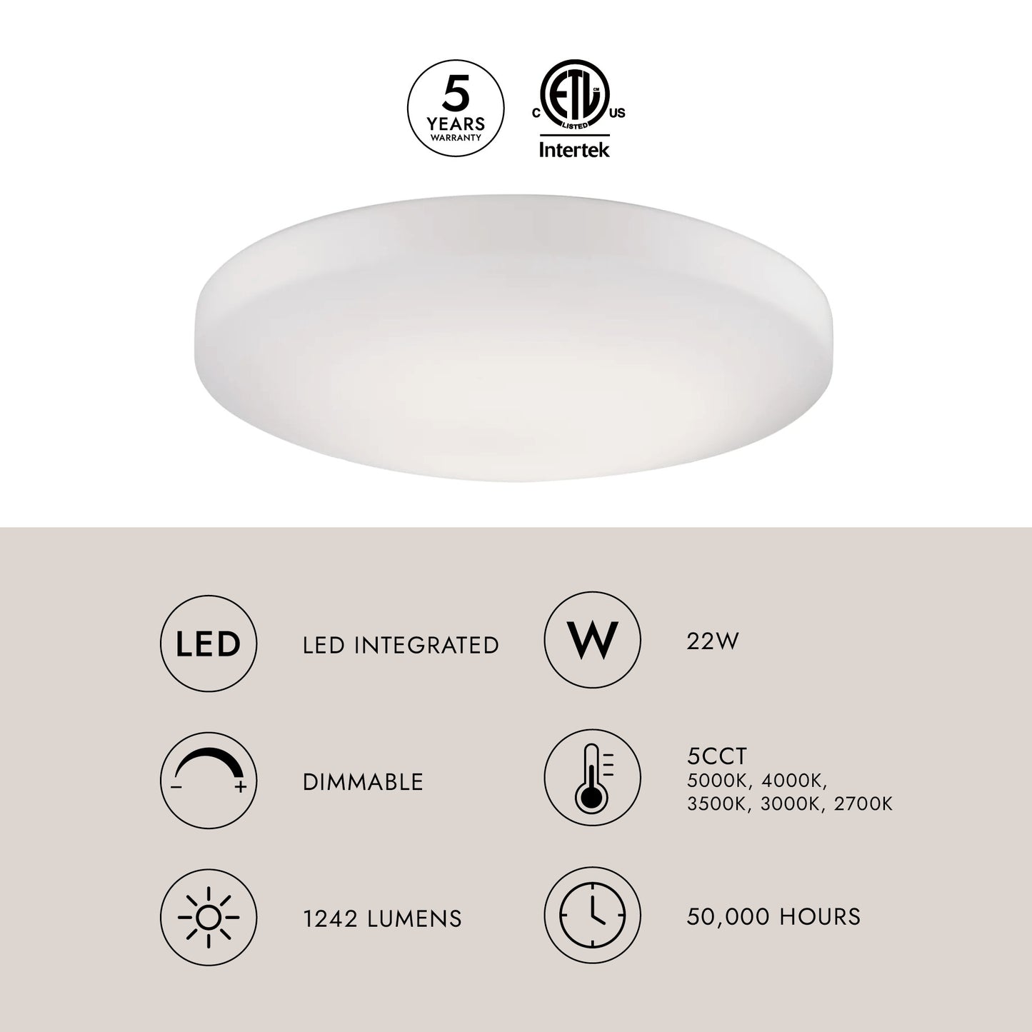 Minimalist designed LED flush mount with round descending dome shaped white glass and white powder coated canopy. Equipped with our powerful 120V, AC LED technology. Available in three different sizes and matching pendants see series for more details.