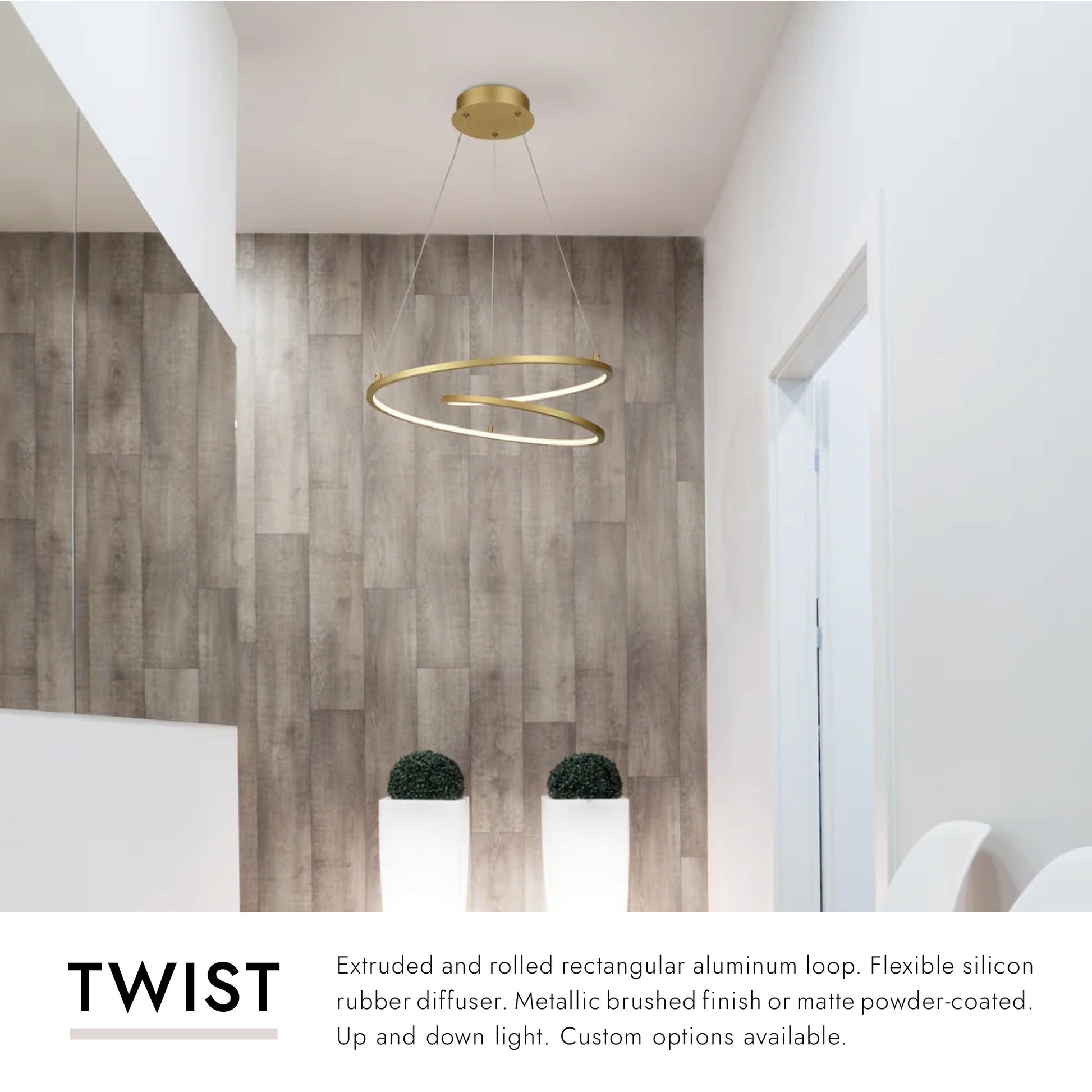 Extruded and rolled rectangular aluminum loop. Flexible silicon rubber diffuser. Metallic brushed finish or matte powder-coated. Up and down light. Custom options available.