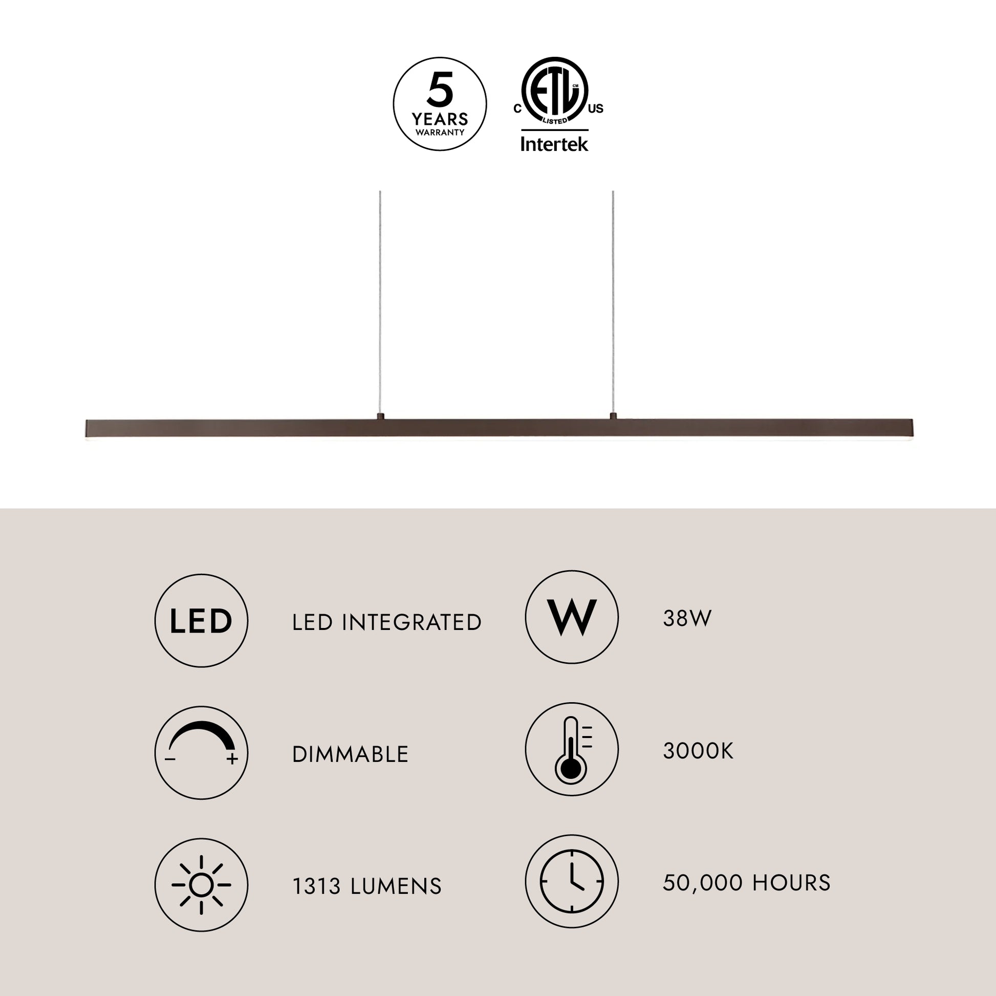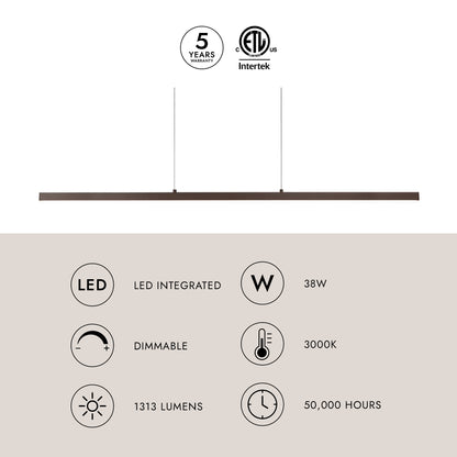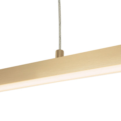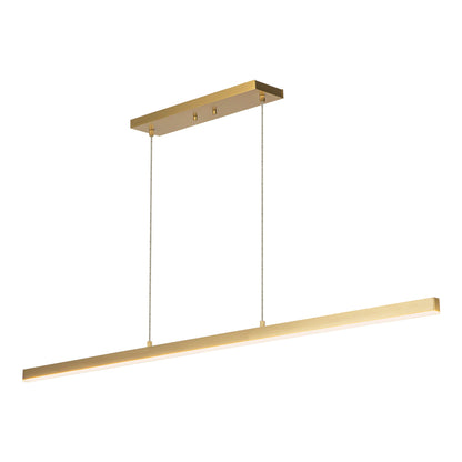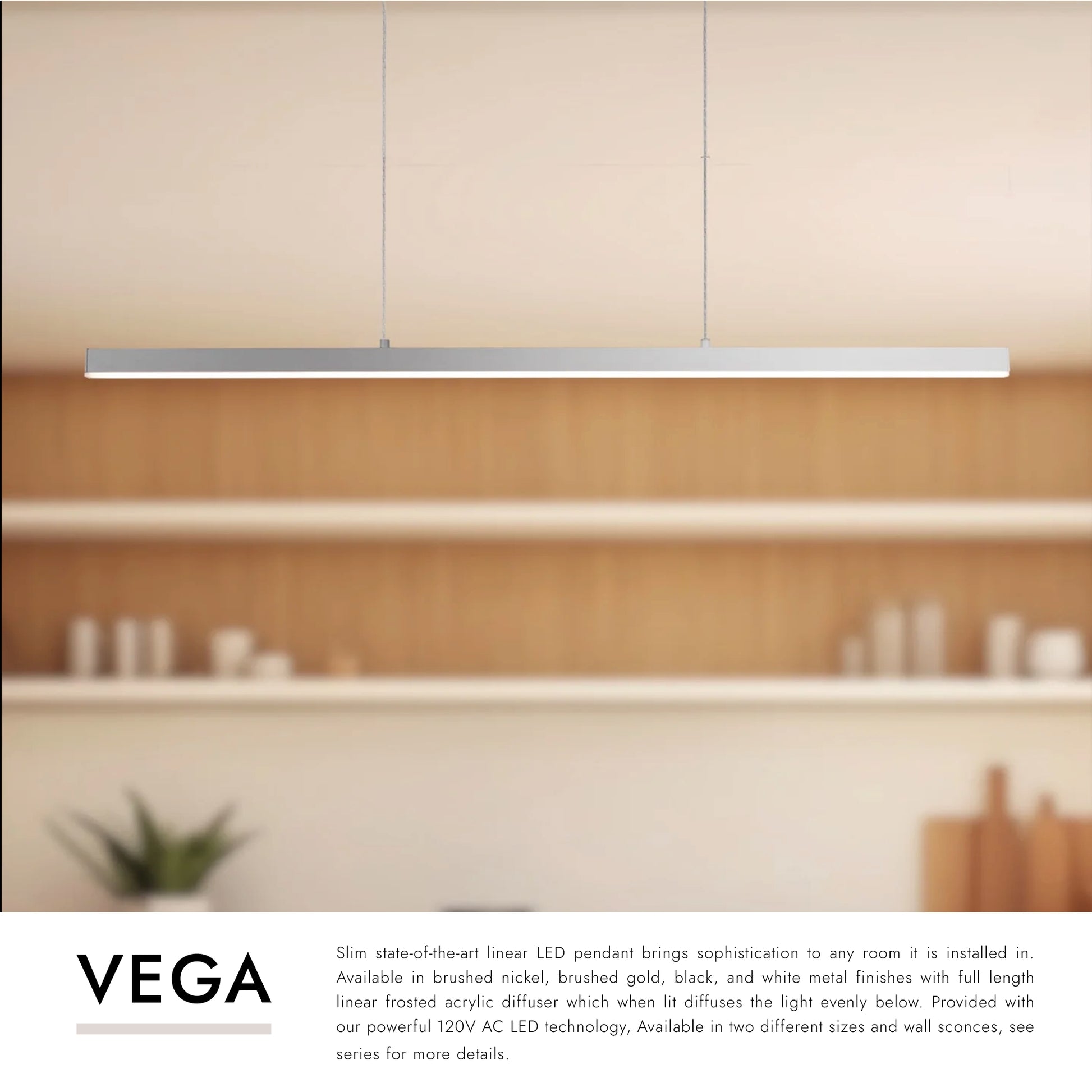 Slim state-of-the-art linear LED pendant brings sophistication to any room it is installed in. Available in brushed nickel, brushed gold, black, and white metal finishes with full length linear frosted acrylic diffuser which when lit diffuses the light evenly below. Provided with our powerful 120V AC LED technology, Available in two different sizes and wall sconces, see series for more details.