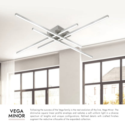Following the success of the Vega family is the next evolution of the line, Vega Minor. The diminutive square linear profile envelops and radiates a soft uniform light in a diverse spectrum of lengths and unique configurations. Refined details with crafted finishes augment the reductive silhouette of the expanded collection.