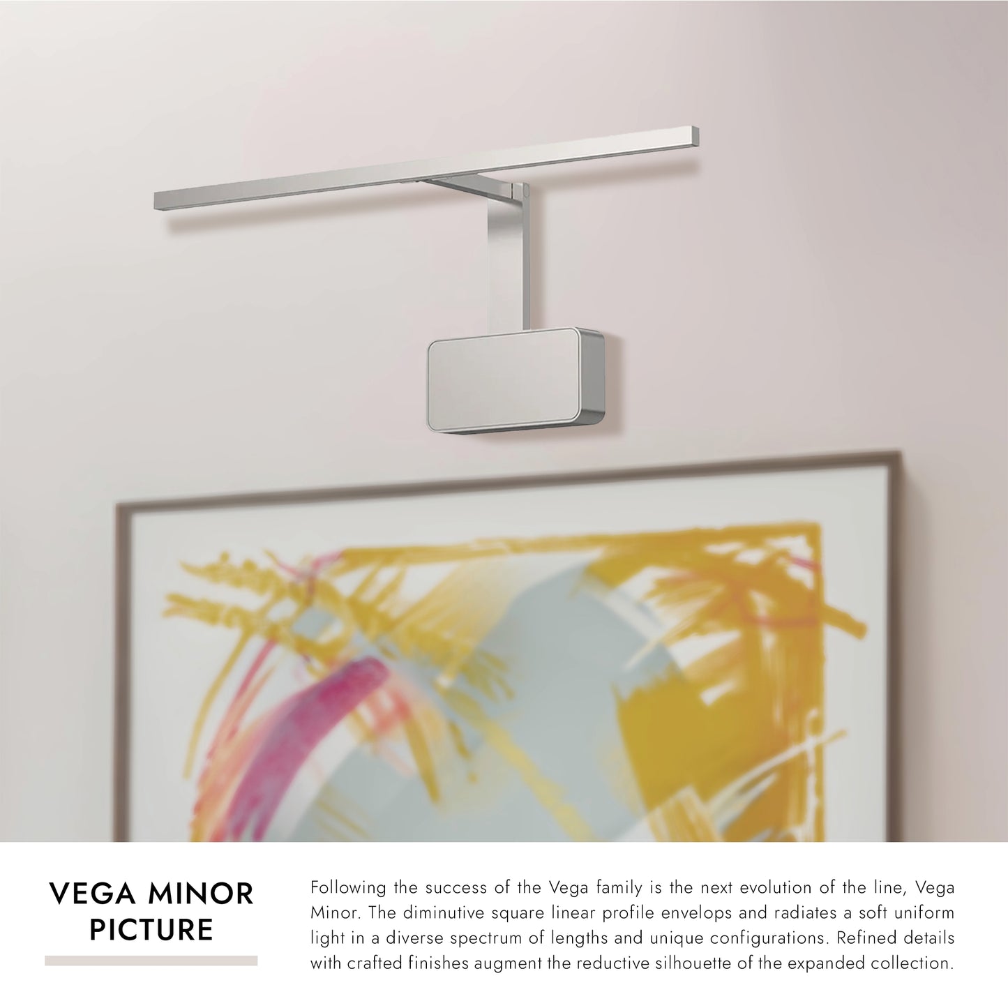Following the success of the Vega family is the next evolution of the line, Vega Minor. The diminutive square linear profile envelops and radiates a soft uniform light in a diverse spectrum of lengths and unique configurations. Refined details with crafted finishes augment the reductive silhouette of the expanded collection.