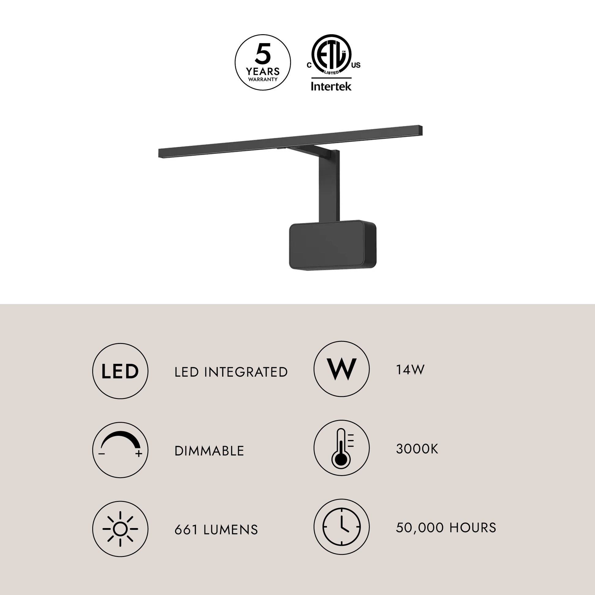 - Integrated LED with 3000K Warm White Color Temperature
