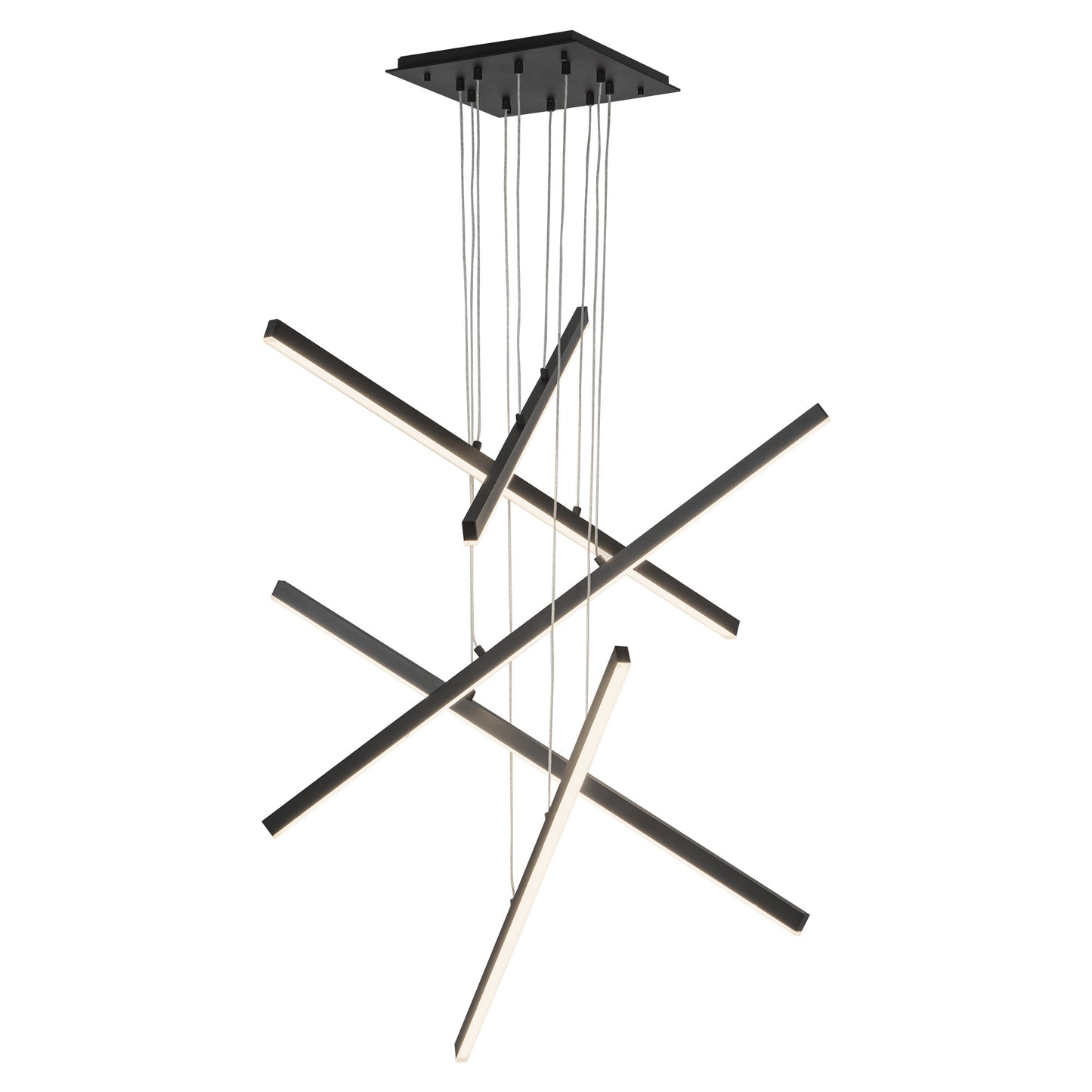 The linear lights can be configured at different heights and angles to create distinct sculptural orientations. Ordered into clean parallels or jumbled in playful asymmetry, Vega can be customized to complement any space.