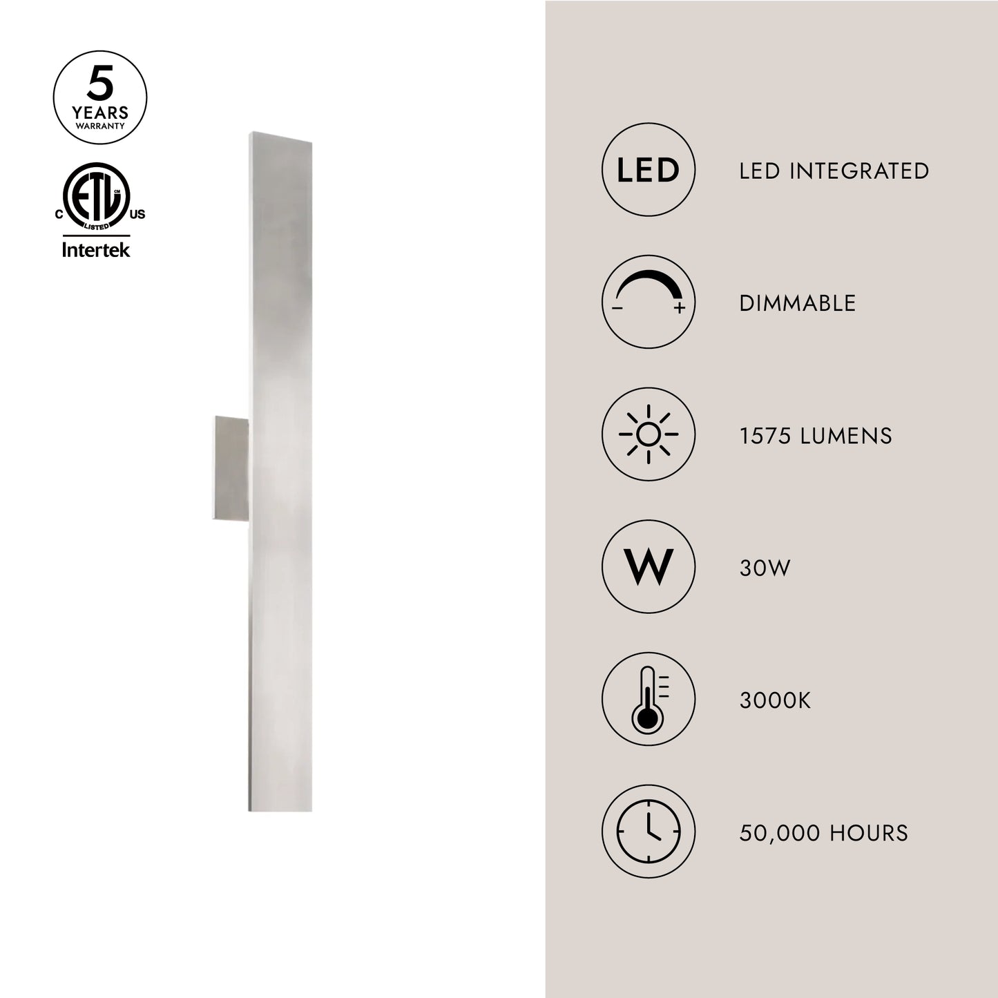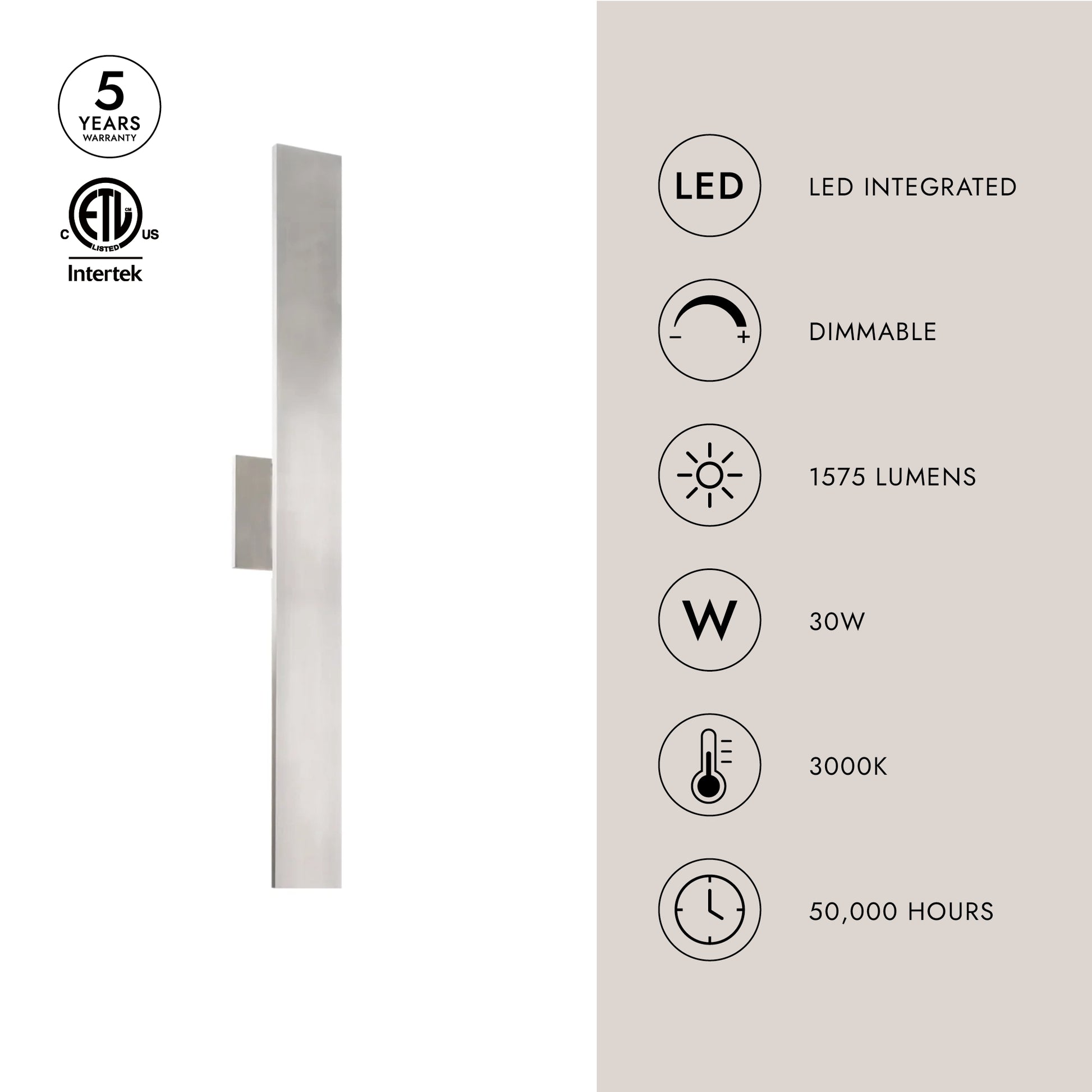 - Integrated LED with 3000K Warm White Color Temperature