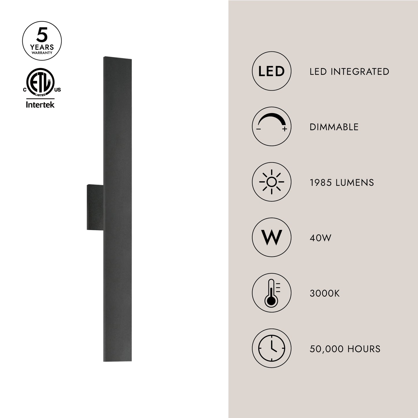 | Fixture Dimensions | W3" x H36" x E2-3/8" |