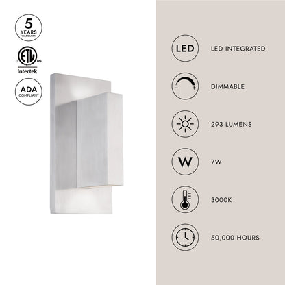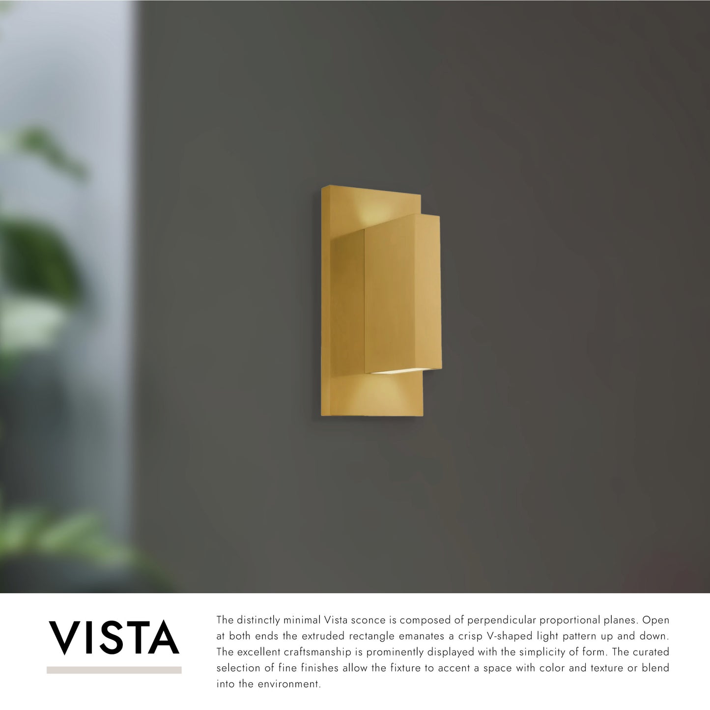 The distinctly minimal Vista sconce is composed of perpendicular proportional planes. Open at both ends the extruded rectangle emanates a crisp V-shaped light pattern up and down. The excellent craftsmanship is prominently displayed with the simplicity of form. The curated selection of fine finishes allow the fixture to accent a space with color and texture or blend into the environment.