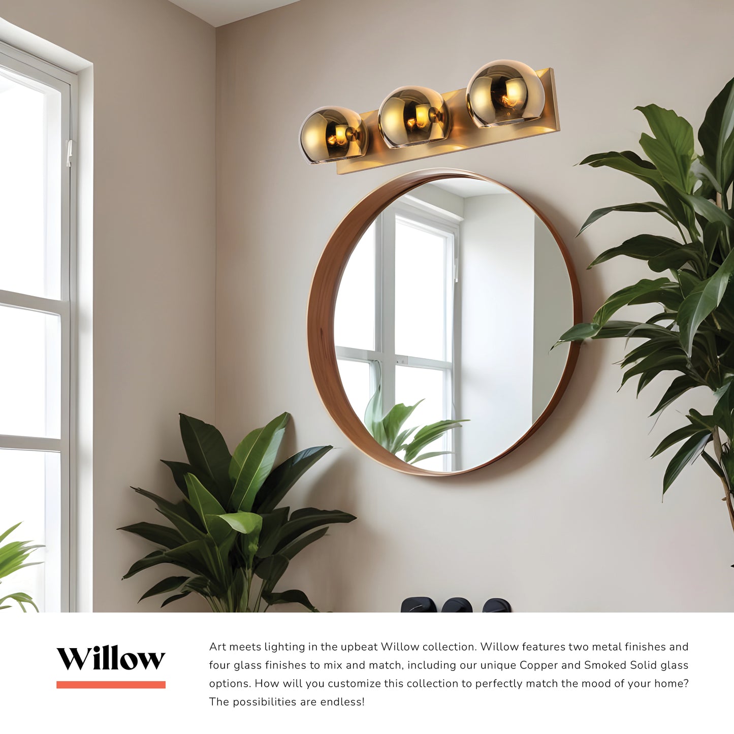 Art meets lighting in the upbeat Willow collection. Willow features two metal finishes and four glass finishes to mix and match, including our unique Copper and Smoked Solid glass options. How will you customize this collection to perfectly match the mood of your home? The possibilities are endless!